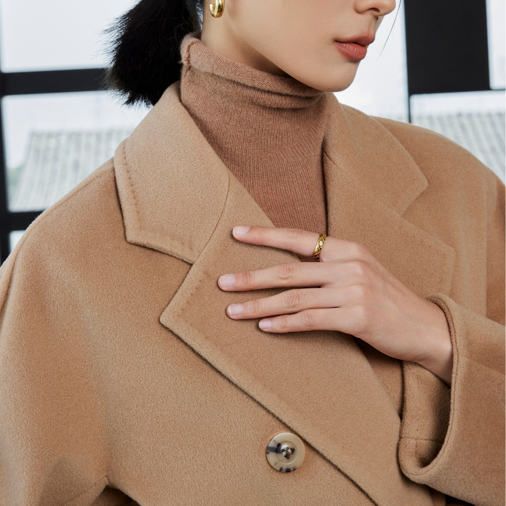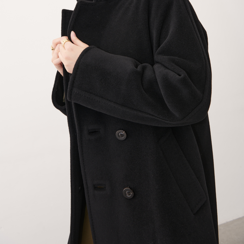 上質なヴァージンウールとカシミヤを混合したビーバー仕上げの生地は、とても保温性が高く、ボリューム感があるにもかかわらず軽くソフトな着心地です。
