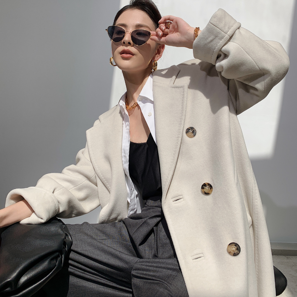 計算しつくされたオーバーサイズのストレートシルエットで、ハンドメイド風ステッチがアクセント。